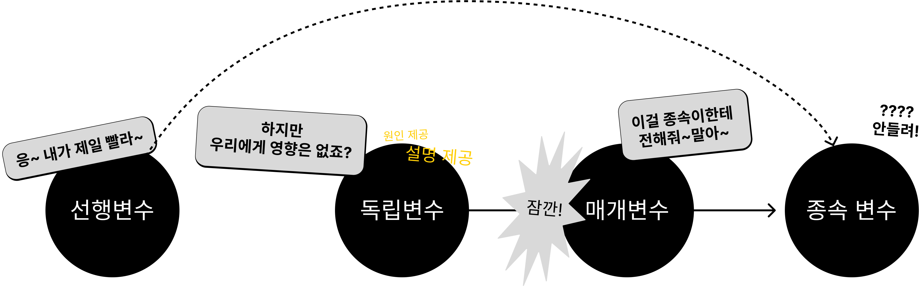 독립변수, 종속변수, 매개변수, 선행변수가 존재한다.