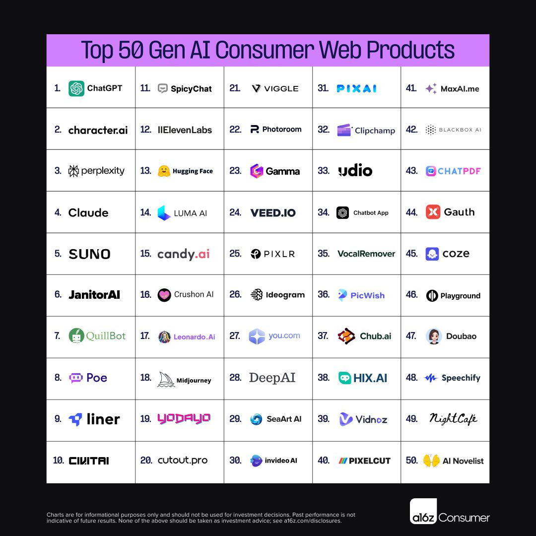Claude, Suno, JanitorAI, QuilBot, Poe, Liner, Civitai
