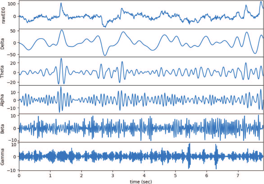 EEG로 측정할 수 있는 진동은 여러 주파수들이 합해진 형태이다.